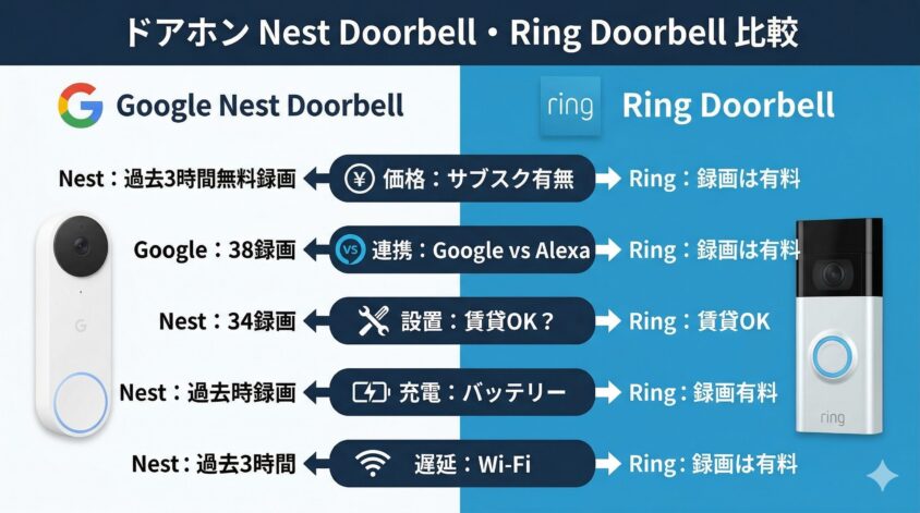 - Google Nest DoorbellとAmazon Ring Doorbellの月額料金と機能の違い
