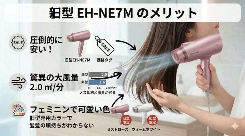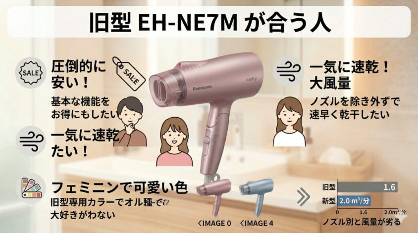 | 重視するポイント | EH-NE7M (旧型) のメリット | こんな人におすすめ |