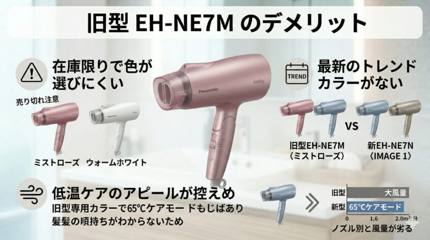 とにかく安く大風量のイオニティを手に入れて毎日の準備を時短したい方は、型落ちのEH-NE7Mがおすすめです。