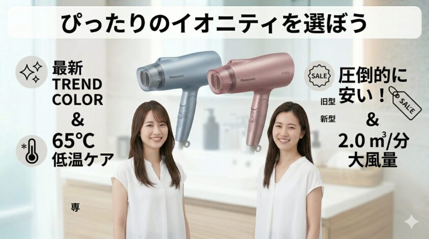 最新モデルの発売によって在庫処分の価格になりやすい今だからこそ、パナソニックのイオニティをお得に手に入れる絶好のチャンスと言えます。