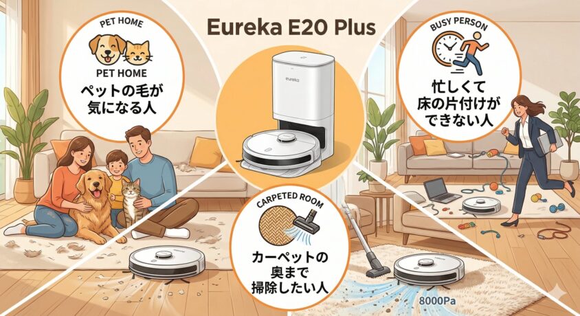 ご自身のライフスタイルが以下の3つのどれかに当てはまるなら、Eureka E20 Plusを選んでおけば後悔しないお買い物になります。