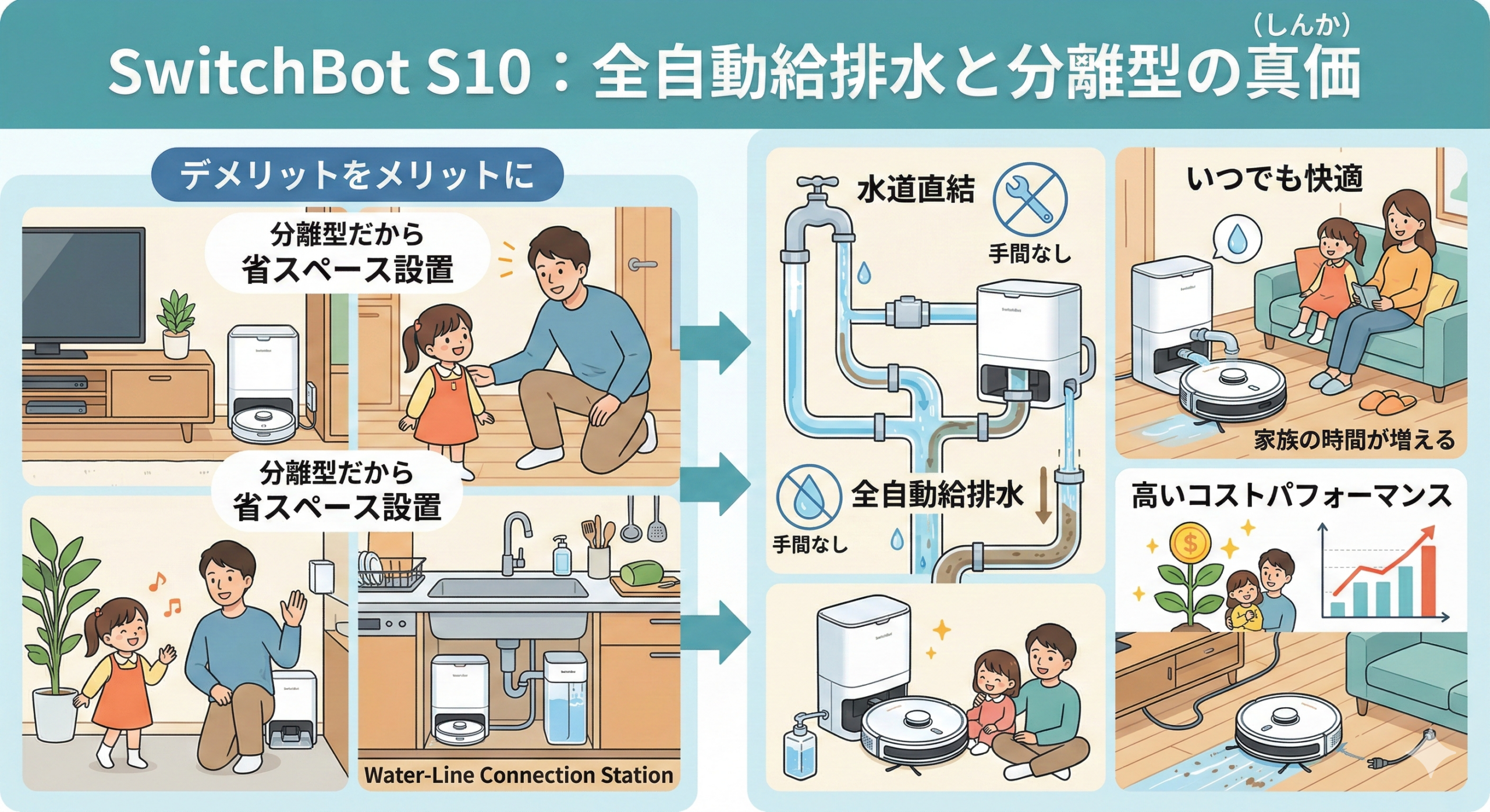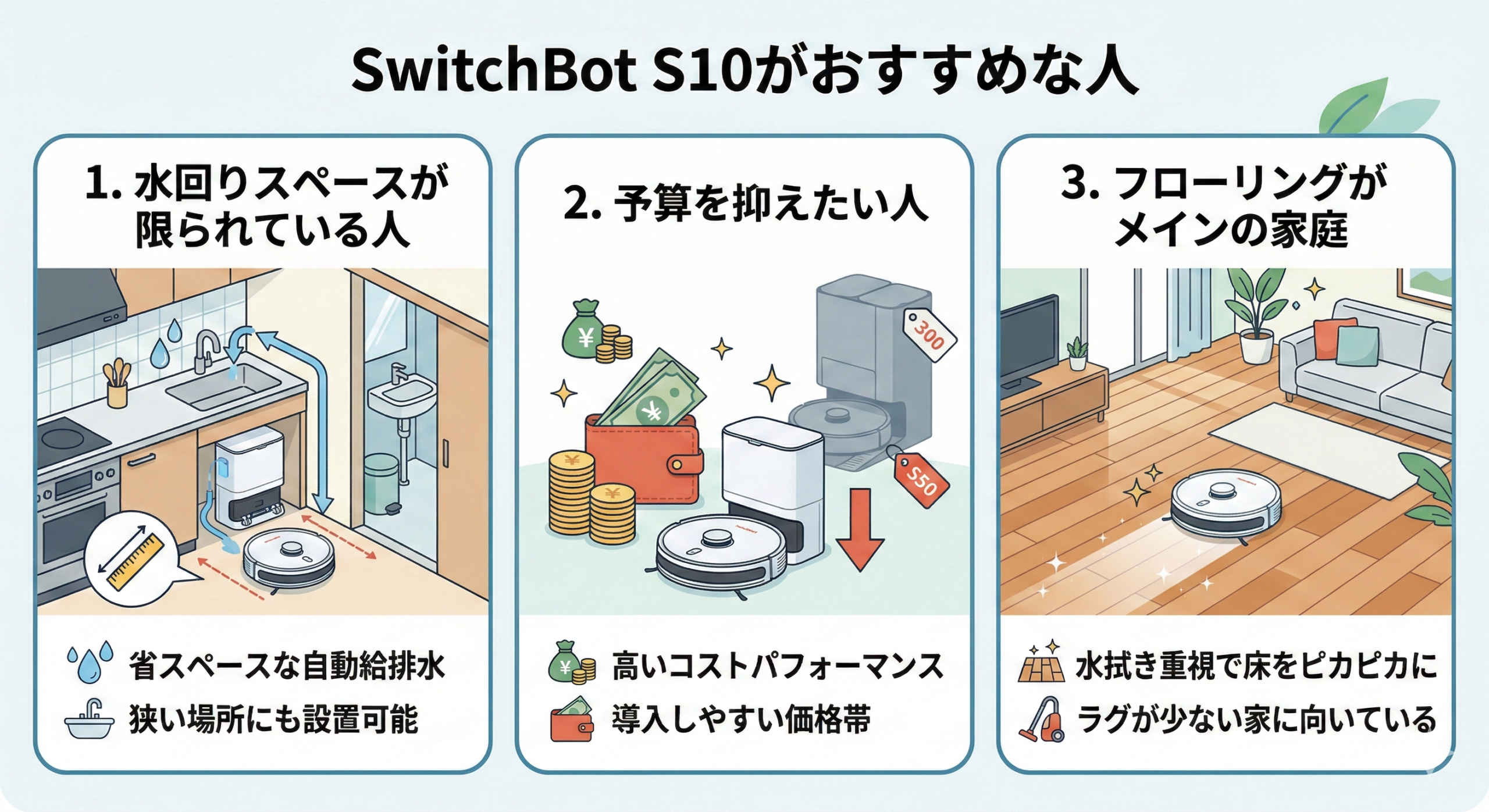 賢く予算を抑えながら家事を自動化したい方には、SwitchBot S10のコストパフォーマンスの高さが非常にマッチします。