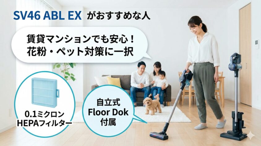SV46 ABL EX SV46 ABL 違いを比較する上で、EXモデル最大のメリットは「健康への投資」と「住環境を選ばない利便性」です。