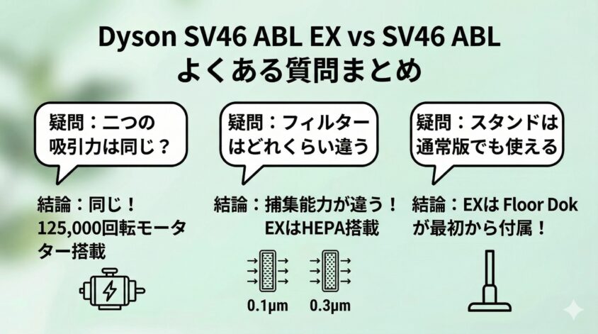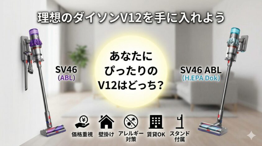 SV46 ABL EX SV46 ABL 違いについて、ダイソンV12の購入前に読者さんがよく抱く疑問と結論をまとめました。