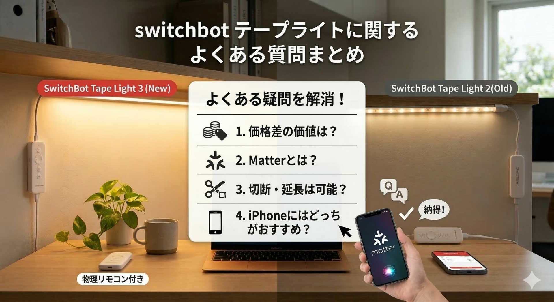 「switchbot テープライト3 2 違い」について調べている方が、購入直前によく抱く疑問と回答をまとめました。